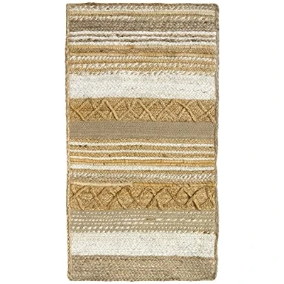 HAMID Jute Rug, Sofia Rug 100% White and Natural, Fibre Hand Woven, Soft High Strength for Living Room, Dining Bedroom, Hallway (110 x 60 cm)