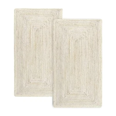 HAMID Pack of 2 Ivory Alhambra Jute Rug, 100% Fibre, Hand Braided, Living Room, Dining Bedroom, Corridors, (80 x 150 cm) pcs