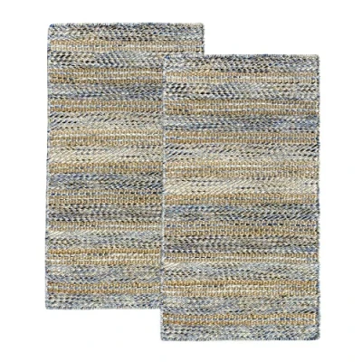 HAMID Pack of 2 Jute Wool Olivia Rug and 80 x 150 cm, Hand Woven for Living Room, Bedroom, Heather Blue