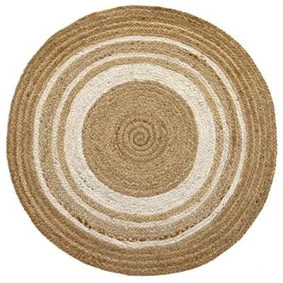 HAMID Rug Jute Round Alhambra Natural And White Colour, Rug, Area 100% Fibre Hand Wovem, Braided for Home, Living Room, Floor Carpet..(100x100cm)