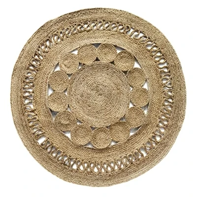 HAMID Rug Jute Round Alhambra Nazari Natural Colour, Rug, Area 100% Fibre Handmade, Braided for Decoration. Home, Living Room, Floor Carpet..(120x120cm)