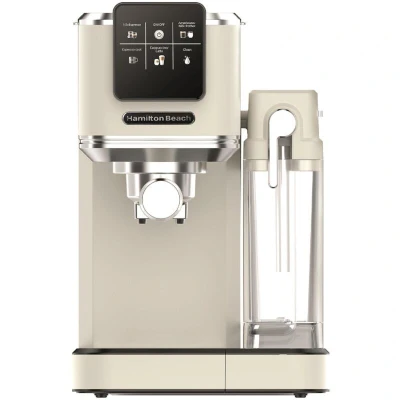 Hamilton Beach BaristaPro+ Touch 8-in-1 Semi-Automatic Espresso Machine with Cold Brew, Integrated Milk Frother, 20-Bar Pressure, Touchscreen Control, 1.2L Water Tank, Cream Café-Quality Espresso at Your Fingertips Step into the world of barista-level coffee with the BaristaPro+ Touch — a semi-automatic espresso machine crafted for speed, precision, and flawless results with just a single tap. Designed for true coffee enthusiasts, it combines sleek, modern style with powerful features to deliver café-quality drinks anytime, right in your home. From rich, bold espresso shots to smooth, refreshing cold brews in just 40 seconds, the ColdBrew Express feature unlocks complex flavours without the wait—perfect for busy mornings or spontaneous cravings. Master every coffee style effortlessly using the integrated milk system and precision steam wand. Create velvety lattes, creamy cappuccinos, and silky microfoam with ease, thanks to the removable 1L milk tank for quick refills and hygienic
