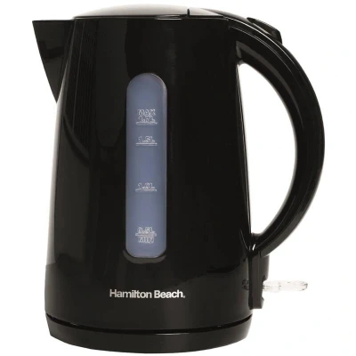 Hamilton Beach Electric Kettle, 1.7L Rapid Boil, Essential, 3000W, Water Indicator Window, Button Release Lid, Boil Dry Protection, Illuminated Switch, Auto Shut Off, Plastic, Black HBK1301B