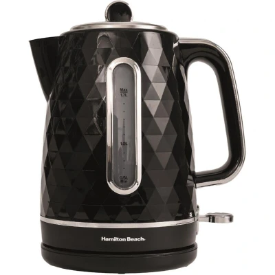 General description Transform your kitchen with the Hamilton Beach Diamond Electric Kettle, a perfect blend of style and functionality. With a generous 1.7L capacity, it boils up to 7 cups of water at once—ideal for family gatherings, tea parties, or hosting friends. The kettle's sleek diamond-textured body, complemented by chrome accents, adds a touch of modern elegance to any countertop. Equipped with boil-dry safety protection and an on/off indicator light, it ensures peace of mind with every use. The easy-to-read water window lets you effortlessly check the water level, while built-in cord storage keeps your kitchen neat and tidy. Technical specifications Capacity: 1.7L (boils up to 7 cups) Dimensions: Height - 25.9 cm, Width - 21.5 cm, Length - 15.7 cm Weight: 1.2 kg Other information Boil-Dry Safety Protection with On/Off Indicator Light Easy-to-Read Water Window Built-In Cord Storage