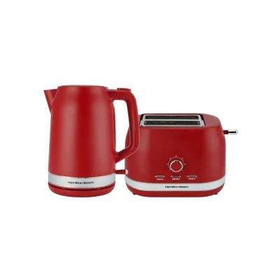 Hamilton Beach Ella Kettle & Toaster Set 1.7L Kettle, 2 Slice Toaster, Boil Dry Protection, Compact, 7 Browning Levels, Removable Crumb Tray HBELLAMR, Red