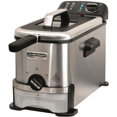 Hamilton Beach Professional PureFry Deep Fat Fryer 3L – Electric Stainless Steel Fryer with Oil Filtration System, Cool-Touch Handles, Adjustable Temperature, Dishwasher Safe Parts, Silver Crispy Perfection. Cleaner Oil. Effortless Frying Every Time. Elevate your kitchen experience with the Hamilton Beach PureFry 3L Deep Fryer—engineered for perfectly crispy, golden results with less mess and zero hassle. Say goodbye to wasted oil and tedious cleanups, thanks to its innovative built-in oil filtration system that automatically drains and filters oil after every use. Whether you're frying up crispy chips, juicy chicken wings, or classic pub-style fish, PureFry delivers professional-grade performance that’s big enough for the whole family but compact enough for easy storage. Enjoy the convenience of fast, healthier frying with total control at your fingertips. Advanced Oil Filtration: Extends oil life by automatically filtering impurities after each cook. Generous 3L Capacity: Perfect