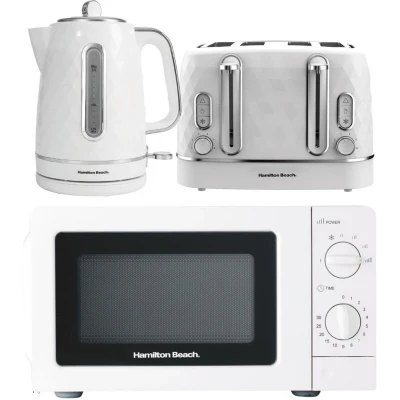 Hamilton Beach Kettle Toaster Microwave Set, Diamond, Kettle, 1.7L, 4 Slice, Oven, Standard, 20L, 700W, Kitchen White HBDIAWSM
