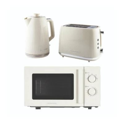 Inspired by Miami, Crafted for You Inspired by Miami’s warm sandy beaches and relaxed coastal style, the Hamilton Beach Miami Kitchen Set in Sand brings soft, neutral elegance to your kitchen. With its smooth sand-coloured finish and ribbed texture design, this matching microwave, kettle and toaster trio delivers timeless style with practical functionality. The Hamilton Beach Miami Kitchen Set combines style, substance and everyday convenience — a perfect way to bring coordinated design and practical functionality into your kitchen. Key Features You'll Love: Coordinated Sand 3-Piece Set: Matching kitchen appliances in a warm sand finish inspired by Miami’s relaxed beach tones. 20L Manual Microwave With Quick Defrost: 800W power, five heat settings and simple rotary controls for easy cooking, reheating and fast, even defrosting. 1.7L Fast Boil Kettle With Boil-Dry Protection: Rapid boiling performance with removable limescale filter, clear water window and automatic shut-off for