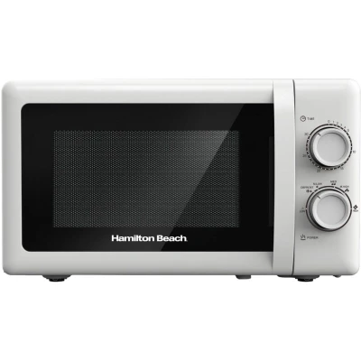Hamilton Beach Microwave, 20L, 700W, Stainless Steel Cavity, Manual Control, 5 Power Levels, Quick Defrost, 30 Min Timer, White HBMX79SSW
