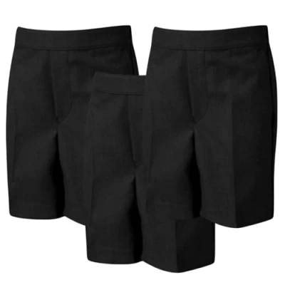 Comfort and Style: This pack of 3 includes boys pull on school shorts designed for quick dressing, featuring a flat front and half-elasticated waist for a comfy, adaptable fit. These black boys school shorts allow free movement and all-day comfort, making these elasticated shorts an ideal choice of school shorts for boys for daily school routines Long Lasting Fabric: These boys' school uniform shorts are made using a strong 65% Polyester 35% Viscose fabric blend to handle everyday school life. The Teflon coating on these boys shorts offers top-tier wrinkle and stain resistance, making these boys' shorts a reliable and low-maintenance school uniform option for active young boys Practical Features: These knee length shorts feature two convenient side pockets, ideal for carrying essential small items. Designed with both comfort and practicality in mind, these black shorts boys are perfect for everything from classroom learning to playtime. These boys school uniform shorts easily adapt to all kinds of school activities Year-Round Wear: Designed for year-round wear, these black kids shorts are breathable and lightweight, making them excellent summer shorts and reliable throughout every season. These elasticated school shorts offer freedom of movement, ensuring lasting comfort during active school days and pairing perfectly with all boys' school uniforms Wide Range: These kids shorts boys come in a wide range of sizes from 2 to 13 years, offering a comfortable and flexible fit. Built for everyday school life, these boys elasticated school shorts combine long-lasting quality, smart design, and ease of movement, making them a reliable choice in any school uniform boys collection
