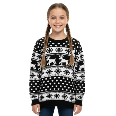 𝗣𝗿𝗲𝗺𝗶𝘂𝗺 𝗗𝗼𝘂𝗯𝗹𝗲 𝗞𝗻𝗶𝘁 𝗤𝘂𝗮𝗹𝗶𝘁𝘆: Crafted from high-quality 100% acrylic with a premium double-knitted construction, this festive jumper offers superior warmth, softness, and durability that lasts year after year. Designed to stay cozy and itch-free, it’s available in Red, Black, Cream, and Wine, adding timeless charm to any winter wardrobe 𝗙𝗲𝘀𝘁𝗶𝘃𝗲 𝗥𝗲𝗶𝗻𝗱𝗲𝗲𝗿 & 𝗦𝗻𝗼𝘄𝗳𝗹𝗮𝗸𝗲 𝗣𝗮𝘁𝘁𝗲𝗿𝗻: Bring Christmas cheer with this adorable knitted kids jumper featuring a classic reindeer and snowflake design. Perfect for school parties, Christmas jumper day, or family celebrations, it adds a fun, seasonal touch for both boys and girls 𝗖𝗼𝗺𝗳𝗼𝗿𝘁𝗮𝗯𝗹𝗲 𝗣𝘂𝗹𝗹-𝗢𝗻 𝗖𝗿𝗲𝘄 𝗡𝗲𝗰𝗸: Designed for comfort and convenience, this easy pull-on crew neck jumper allows quick dressing with no buttons or zippers. The stretchable knit ensures a snug yet flexible fit, ideal for everyday wear, festive events, or family photos 𝗨𝗻𝗶𝘀𝗲𝘅 𝗙𝗶𝘁: Available in sizes 3-4, 5-6, 7-8, 9-10, 11-12, and 13 years, this kids christmas jumper offers a comfortable and true-to-size fit for both boys and girls. A perfect festive choice whether you’re dressing toddlers or pre-teens 𝗗𝘂𝗿𝗮𝗯𝗹𝗲 𝗬𝗲𝗮𝗿 𝗔𝗳𝘁𝗲𝗿 𝗬𝗲𝗮𝗿: Built to last through countless winters, this durable double-knit sweater keeps its shape, colour, and soft feel wash after wash. Easy-care fabric makes it ideal for re-use every festive season, perfect for school, family gatherings, or Christmas Day wear