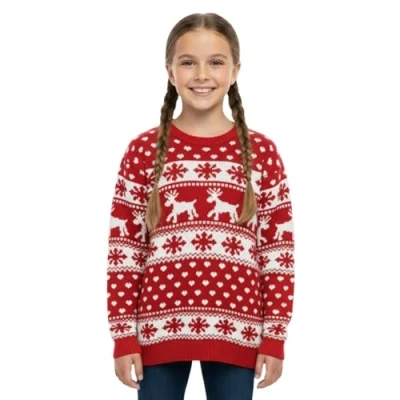 Amazon 𝗣𝗿𝗲𝗺𝗶𝘂𝗺 𝗗𝗼𝘂𝗯𝗹𝗲 𝗞𝗻𝗶𝘁 𝗤𝘂𝗮𝗹𝗶𝘁𝘆: Crafted from high-quality 100% acrylic with a premium double-knitted construction, this festive jumper offers superior warmth, softness, and durability that lasts year after year. Designed to stay cozy and itch-free, it’s available in Red, Black, Cream, and Wine, adding timeless charm to any winter wardrobe 𝗙𝗲𝘀𝘁𝗶𝘃𝗲 𝗥𝗲𝗶𝗻𝗱𝗲𝗲𝗿 & 𝗦𝗻𝗼𝘄𝗳𝗹𝗮𝗸𝗲 𝗣𝗮𝘁𝘁𝗲𝗿𝗻: Bring Christmas cheer with this adorable knitted kids jumper featuring a classic reindeer and snowflake design. Perfect for school parties, Christmas jumper day, or family celebrations, it adds a fun, seasonal touch for both boys and girls 𝗖𝗼𝗺𝗳𝗼𝗿𝘁𝗮𝗯𝗹𝗲 𝗣𝘂𝗹𝗹-𝗢𝗻 𝗖𝗿𝗲𝘄 𝗡𝗲𝗰𝗸: Designed for comfort and convenience, this easy pull-on crew neck jumper allows quick dressing with no buttons or zippers. The stretchable knit ensures a snug yet flexible fit, ideal for everyday wear, festive events, or family photos 𝗨𝗻𝗶𝘀𝗲𝘅 𝗙𝗶𝘁: Available in sizes 3-4, 5-6, 7-8, 9-10, 11-12, and 13 years, this kids christmas jumper offers a comfortable and true-to-size fit for both boys and girls. A perfect festive choice whether you’re dressing toddlers or pre-teens 𝗗𝘂𝗿𝗮𝗯𝗹𝗲 𝗬𝗲𝗮𝗿 𝗔𝗳𝘁𝗲𝗿 𝗬𝗲𝗮𝗿: Built to last through countless winters, this durable double-knit sweater keeps its shape, colour, and soft feel wash after wash. Easy-care fabric makes it ideal for re-use every festive season, perfect for school, family gatherings, or Christmas Day wear