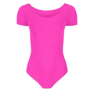 Hamishkane Girls Short Sleeve Bodysuit Dance Ballet Leotard Kids Plain Stretchy Microfibre Leotards Top