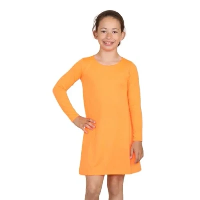 Hamishkane® Girls Summer Dress Plain Long Sleeve Round Neck Flared Mini Swing Stylish for All Occasions Neon Orange