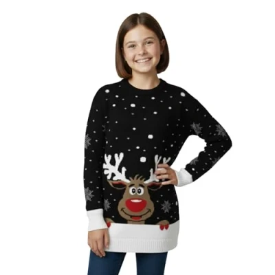 Festive Holiday Charm: This Christmas jumper kids will love showcases a delightful snowflake jumper and charming Xmas reindeer design, making this knitted sweater the perfect choice for Christmas jumper day, holiday photos, and festive gatherings Soft and Snuggly Warmth: Made from 100% acrylic, this knitted jumper provides cozy warmth while being soft on the skin, making it the ideal Christmas sweater for keeping boys and girls snug during winter. You can also use it as girls xmas gifts Easy Pull-On Comfort: With a simple pull-on style and comfortable crew neck, this Xmas jumper is designed for easy wear. Thus, this girls and boys Christmas sweater allows kids to get dressed with ease. A perfect kids jumper for daily wear and holiday outings Available in Multiple Sizes: Designed for ages 3 to 13, this children's Christmas jumper fits toddlers to pre-teens, including boys jumpers 3-4 years and Christmas jumper age 11. Thus our kids Christmas jumper is perfect for creating matching holiday looks for siblings Low-Maintenance Care: This kids Xmas sweater is machine washable, making this light up christmas jumper easy to keep clean and ready for festive events. A durable choice among Christmas jumpers for children for long-lasting holiday wear