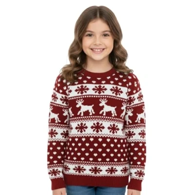 Festive Holiday Charm: This Christmas jumper kids will love showcases a delightful snowflake jumper and charming Xmas reindeer design, making this knitted sweater the perfect choice for Christmas jumper day, holiday photos, and festive gatherings Soft and Snuggly Warmth: Made from 100% acrylic, this knitted jumper provides cozy warmth while being soft on the skin, making it the ideal Christmas sweater for keeping boys and girls snug during winter. You can also use it as girls xmas gifts Easy Pull-On Comfort: With a simple pull-on style and comfortable crew neck, this Xmas jumper is designed for easy wear. Thus, this girls and boys Christmas sweater allows kids to get dressed with ease. A perfect kids jumper for daily wear and holiday outings Available in Multiple Sizes: Designed for ages 3 to 13, this children's Christmas jumper fits toddlers to pre-teens, including boys jumpers 3-4 years and Christmas jumper age 11. Thus our kids Christmas jumper is perfect for creating matching holiday looks for siblings Low-Maintenance Care: This kids Xmas sweater is machine washable, making this light up christmas jumper easy to keep clean and ready for festive events. A durable choice among Christmas jumpers for children for long-lasting holiday wear