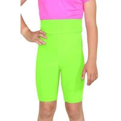 Hamishkane® Kids Girls High Waist Cycling Shorts Plain Microfiber Gymnastics Sports Dance Neon Green
