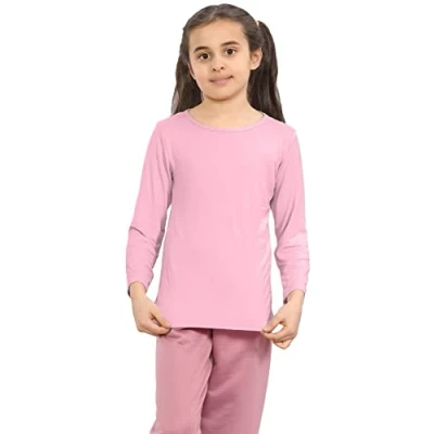 Hamishkane® Kids School Shirts Plain Round Neck Girls & Boys Long Sleeve T Shirt Stretchy Comfortable for Rose Pink