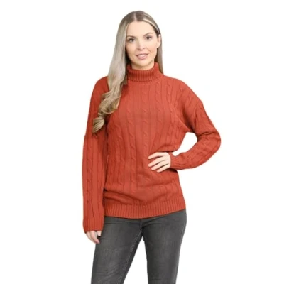 Hamishkane® Ladies Cable Knitted Jumper, Polo High Neck Jumpers for Women UK, Long Sleeve Pullover Casual Turtle Tops Women, Winter Size 8 26 Rust