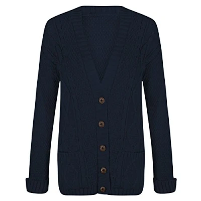 Hamishkane® Ladies Long Sleeve Cardigans, Womens Chunky Knit Jumpers, Warm Cable Knitwear Women, V Neck Cardigans for Women UK, Grandad Winter Cardigan with Buttons Navy