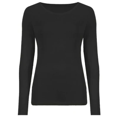 Hamishkane Ladies Long Sleeve Round Neck Plain Casual Basic Stretchy Fitted Womens T Shirt Top Black
