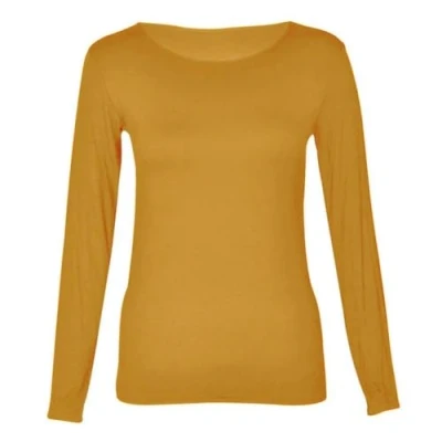 Hamishkane Ladies Long Sleeve Round Neck Plain Casual Basic Stretchy Fitted Womens T Shirt Top Camel