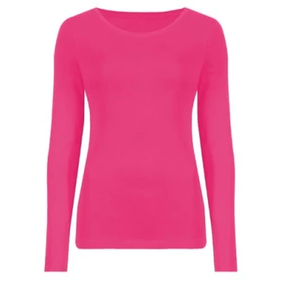Hamishkane Ladies Long Sleeve Round Neck Plain Casual Basic Stretchy Fitted Womens T Shirt Top Cerise