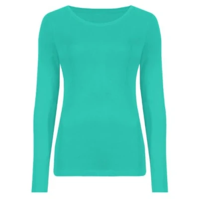 Hamishkane Ladies Long Sleeve Round Neck Plain Casual Basic Stretchy Fitted Womens T Shirt Top Jade Green