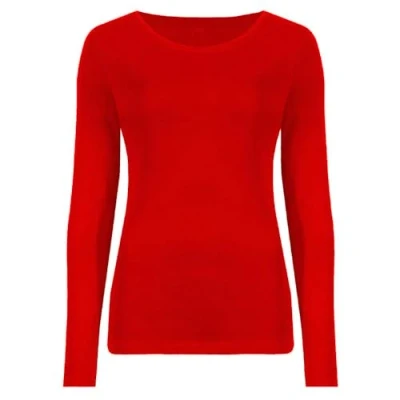Hamishkane Ladies Long Sleeve Round Neck Plain Casual Basic Stretchy Fitted Womens T Shirt Top Red