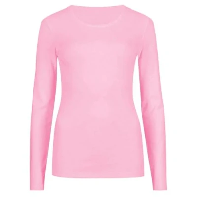 Hamishkane Ladies Long Sleeve Round Neck Plain Casual Basic Stretchy Fitted Womens T Shirt Top Rose Pink