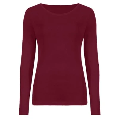 Hamishkane Ladies Long Sleeve Round Neck Plain Casual Basic Stretchy Fitted Womens T Shirt Top Wine