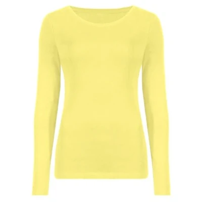 Hamishkane Ladies Long Sleeve Round Neck Plain Casual Basic Stretchy Fitted Womens T Shirt Top Yellow