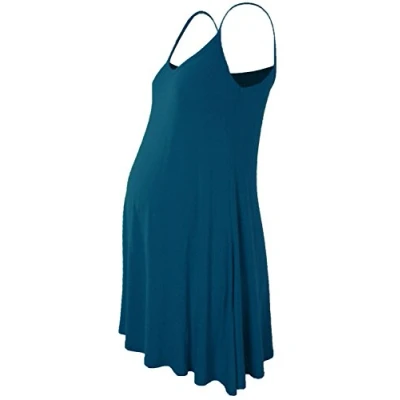 Hamishkane Ladies Maternity Plain Sleeveless Floaty Flare Strappy Swing Cami Dress Top Teal