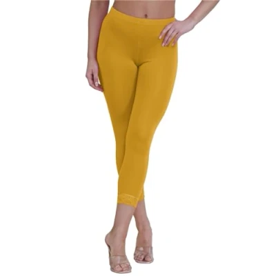 Excellent Quality Elasticated Waist Slim Fit Skinny Stretchy Cropped Capri Pants New Fashion Plain Floral Lace Trim 3/4 Length Basic Leggings Jeggings Capri Pants Soft Strechy Jersey Comfortable Material. Ideal For Gym, Yoga, Dance, Fitness, Active Wear. Length: 24 Inches Approx.