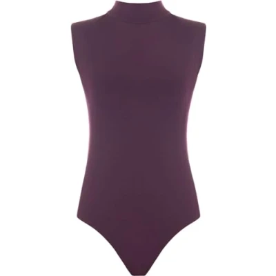Hamishkane Ladies Polo High Neck Bodysuit Womens Plain Sleeveless Leotard Stretchy Party T Shirt Top Purple