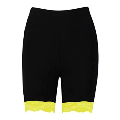 Hamishkane® Ladies Shorts Scallop Lace Trim Womens Cycling Comfortable & Stylish Gym, Yoga Hot Pants, Perfect for Running and Summer Wear Black Neon Yellow