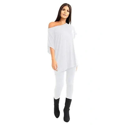 Hamishkane New Ladies Bardot Short Sleeve Baggy T Shirt Top Leggings Loungewear Summer 2 Pcs Set