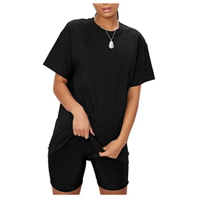Hamishkane New Ladies Oversized Baggy Long T Shirt Top Cycling Shorts 2 Pcs Set Casual Co Ord Suit Black