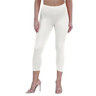 Hamishkane New Ladies Plain Gym Yoga Workout Slim Fit 3/4 Length Capri Pants Crop Leggings Cream