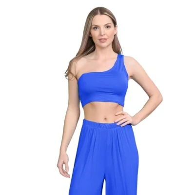 Hamishkane New Ladies Plain One Shoulder Sleeveless Stretchy Crop Top Sports Bra Vest Royal Blue