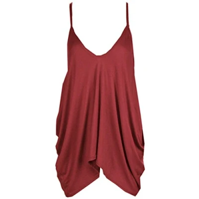 Hamishkane New Ladies Sleeveless V Neck Strappy Romper Baggy Drape Lagenlook Cami Vest Top Wine