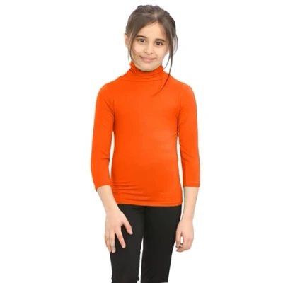 Hamishkane® New Turtle Neck Top Kids, Casual Long Sleeve T Shirt Girls', Kids Polo Shirts Girls & Boys for School and Sports, Unisex Neon Orange