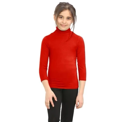 Hamishkane® New Turtle Neck Top Kids, Casual Long Sleeve T Shirt Girls', Kids Polo Shirts Girls & Boys for School and Sports, Unisex Red