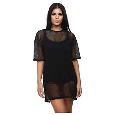 Hamishkane® Oversized T Shirts for Women Short Sleeve Fishnet Sheer Mesh Tops Soft & Stretchy Longline Summer UK Stylish Women's
