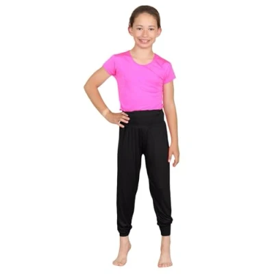 Stylish and Comfortable: These baggy pants for kids feature a trendy harem style that combines fashion with comfort. The loose trousers design allows for unrestricted movement, making them ideal kids trousers for everyday wear, lounging at home, or casual outings, keeping your child both stylish and cozy Ideal for Active Kids: Perfect for an active lifestyle, these girls active wear harem trousers double as dance pants or girls sports leggings, making them great for activities like kids yoga, sports, or dancing. They offer the flexibility and ease needed for all sorts of play and exercise Easy and Secure Fit: Designed with a practical pull-on closure, these kids harem pants are easy to wear. The elasticated waist ensures a snug yet comfortable fit, while the cuffed ankles keep the girls pants securely in place, offering a chic and well-fitted appearance Variety of Colors and Sizes: Available in a range of sizes for children aged 5 to 13 and a wide range of colors, these girls harem trousers are perfect for mixing and matching with various tops. These versatile pants for kids allow for creating different stylish looks for any occasion Soft and Long-Lasting: Made from a blend of 95% Viscose, 5% Elastane, these harem pants trouser are soft to the touch, breathable, and stretchy. The high-quality fabric ensures these harem trousers kids maintain their fit and comfort even after numerous washes, providing long-lasting wear