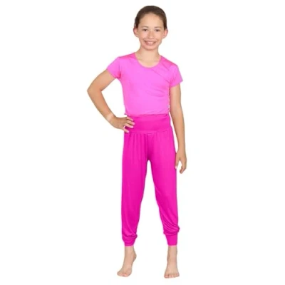Hamishkane®Trendy Harem Pants for Girl Comfortable Baggy Fit Alibaba Girls Leggings Stylish Trousers Kids Perfect Casual Summer Wear and Active Play Neon Pink