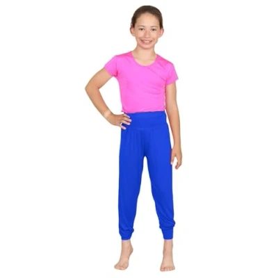 Stylish and Comfortable: These baggy pants for kids feature a trendy harem style that combines fashion with comfort. The loose trousers design allows for unrestricted movement, making them ideal kids trousers for everyday wear, lounging at home, or casual outings, keeping your child both stylish and cozy Ideal for Active Kids: Perfect for an active lifestyle, these girls active wear harem trousers double as dance pants or girls sports leggings, making them great for activities like kids yoga, sports, or dancing. They offer the flexibility and ease needed for all sorts of play and exercise Easy and Secure Fit: Designed with a practical pull-on closure, these kids harem pants are easy to wear. The elasticated waist ensures a snug yet comfortable fit, while the cuffed ankles keep the girls pants securely in place, offering a chic and well-fitted appearance Variety of Colors and Sizes: Available in a range of sizes for children aged 5 to 13 and a wide range of colors, these girls harem trousers are perfect for mixing and matching with various tops. These versatile pants for kids allow for creating different stylish looks for any occasion Soft and Long-Lasting: Made from a blend of 95% Viscose, 5% Elastane, these harem pants trouser are soft to the touch, breathable, and stretchy. The high-quality fabric ensures these harem trousers kids maintain their fit and comfort even after numerous washes, providing long-lasting wear