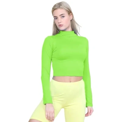 Hamishkane® Women's Long Sleeve Turtle Neck Crop Top, Soft & Comfortable Tops for Women Chic T Shirts Summer Polo UK Neon Green