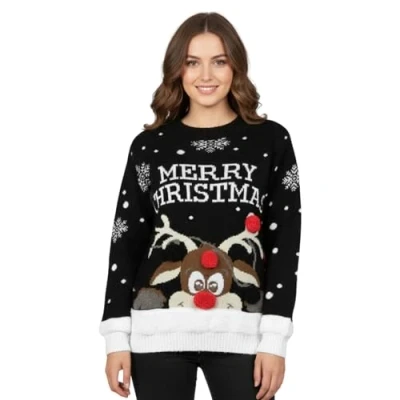 Stylish for the Season: Made from 100% acrylic, these Christmas jumpers for women are designed to keep you cozy. Featuring a crew neck and long sleeves, they offer a timeless style for womens Christmas jumpers Inclusive Sizing for All: With sizes ranging from 8-26, these Christmas jumpers ladies cater to everyone. Whether you're wearing Xmas womens jumpers for casual outings or opting for funny Christmas jumpers at a party, the fit is always flattering Festive Charm: Brighten up gatherings with this standout among Rudolph Christmas jumpers. Or show off your holiday humor with this novelty Xmas jumper featuring reindeer and other cheerful designs. A great pick for an ugly Christmas jumper or a lighthearted option among funny Christmas jumper styles Effortless Maintenance: Enjoy easy cleaning with this Christmas sweatshirt for women. The durable 100% acrylic material ensures your Christmas jumpers stay fresh and ready to wear. Pair it with other ladies Christmas tops for a festive look all season long Celebrate in Festive Style: Perfect for Christmas jumpers for women UK, these pieces combine festive elegance with British flair. Explore a variety of options, from Christmas tops and Xmas jumper styles to playful ugly Xmas jumpers. Celebrate the holidays with women's Christmas jumpers that radiate seasonal joy