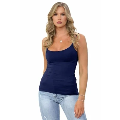 Hamishkane® Womens Plain Bodycon Cami Strappy Sleeveless Tank Tops, Slim Fitted Scoop Neck Vest Tops Women UK, Stretchy Gym Wear, Casual Summer Ladies Navy